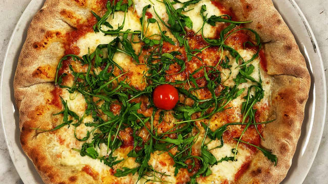 Pomodoro, fior di latte, pancetta affumicata, bufala, basilico