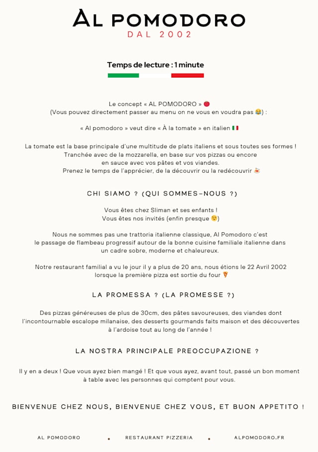 A very warm thank you Maria for this review, we do our best to make Al pomodoro's experience the as nice as possible. See you soon !