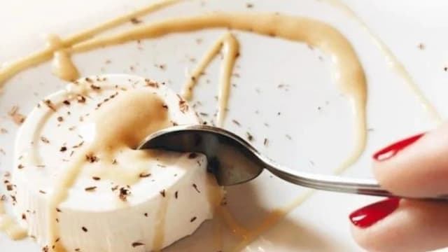 Panna cotta infusa al sigaro con salsa mou al Rum Don Papa e scaglie di cioccolato fondente 85% del Madagascar