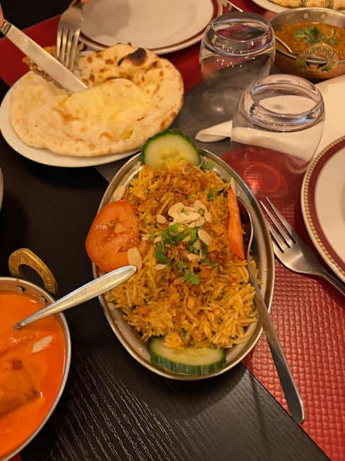 8/10We have eaten in this small Indian place several times over the years when we are in Paris. I has always been good good, good service and good value. I recommend giving it a try if you are in the neighborhood. Both of us had lamb dishes. There were large chunks of very tender lamb, good rice with the biryani and good naan.
