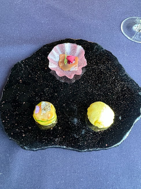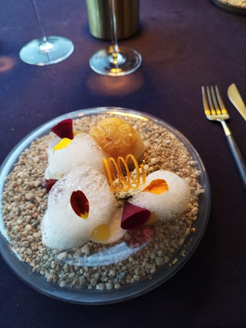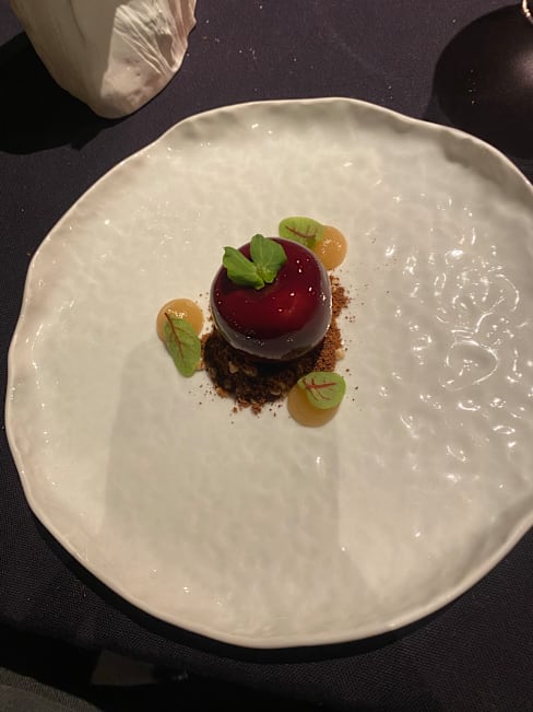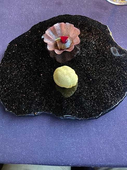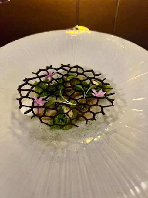 6.5/10Location is nice though we were overlooking a boring lawn, no water. We had a meat Menü-fire-and a vegetarian menue-Earth. The presentation of the dishes was nice but it was not tasty. It was just a mixture of everything but the taste was not there. Quite disappointing. The service was good but they did not try to make a conversation. Even sommelier only mentioned the wine region without any further comments. I would expect to have more details. I do not understand a high rating maybe there was a different Menü before. It was overpriced with no taste.
