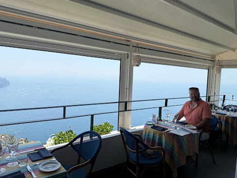 6/10The view is beautiful. The waiter was terrible I think he was upset because we didn’t order wi d. When we reserved, I noted it was a birthday celebration in Ravello. He basically threw the dishes for both courses on the table while my husband was in the men’s room, got upset when I said we wanted each course separate. Then very long wait for second course and he refused to meet my eye or come to the table for the rest of lunch. I was looking forward to this birthday lunch for a month and was sorely disappointed. The maitre d’e was very nice however.
