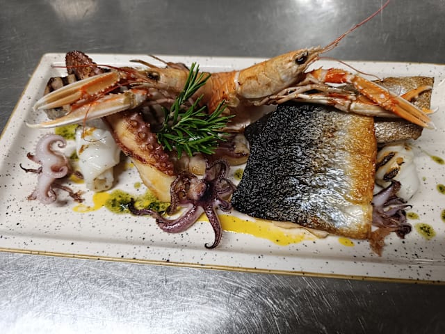 - Trancio di Ricciola ,rondo di patata arrosto e Caponatina dell orto