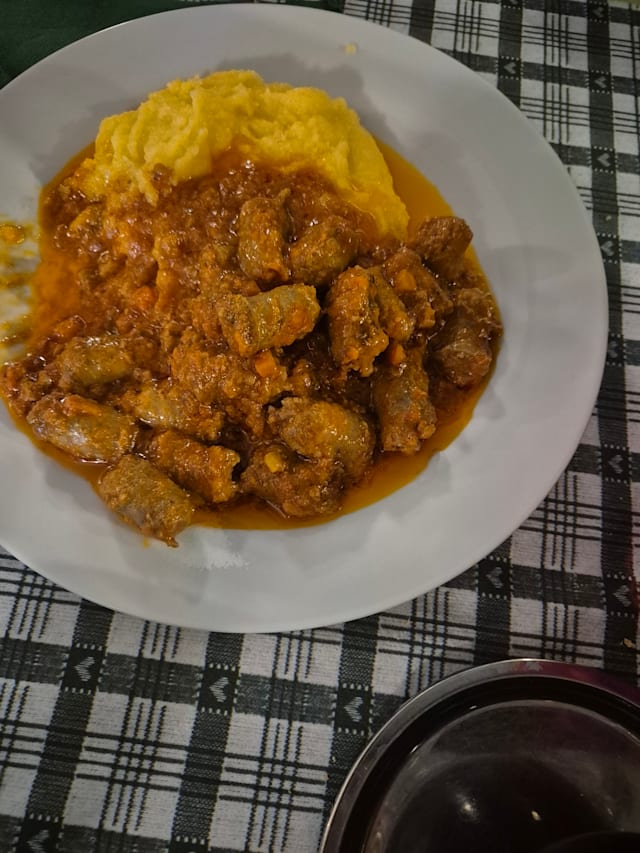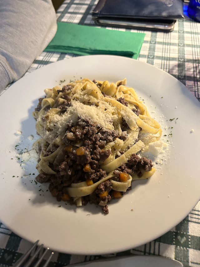 2.5/10We ordered appetizer, risotto and polenta. The appetizer was not the one we ordered (we ordered warm + cold cuts, we got cheese + cold cuts). We did not complain. The risotto was really raw, we sent it back, we heard the waiter and cook complaining about the fact that by sending it back we did not respect them, that we are idiots. They remade it. The cook came and told us that the kind of rice he used does not get creamy like a risotto should be. He said that he precooks all the risotto and then cook it for few minutes with the chosen sauce. The polenta was not cook at all and very grainy, and came with the wrong umido (normal sausage instead of boar tapelucco). Overall, I ate the second risotto not to fight as it was our anniversary, but my wife left every dish except for the appetizer. In the end we talked to other people seating there and they were complaining as well.