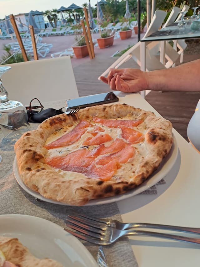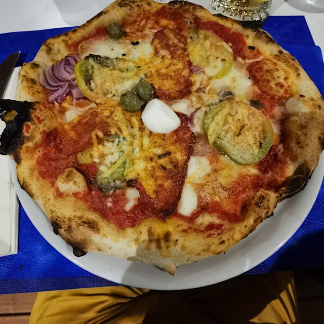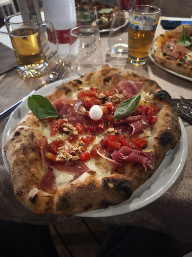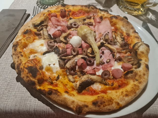 9/10I visited this venue twice in August this summer. We were given a table in a good position in the garden to watch the marvellous sunset. Great place and ambience for eating pizza. Attentive, polite and friendly staff. I tried the porcini pizza and capricciosa - both very nice and tasty.