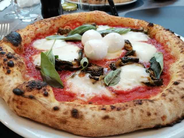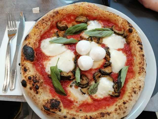 - Pomodoro san marzano, provola affumicata, melanzane fritte, spianata calabra, basilico e olio evo