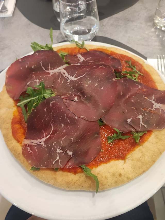 - (Base provola affumicata, in uscita stracotto di manzo, crema di cipolla caramellata, cacioricotta, basilico e olio evo)