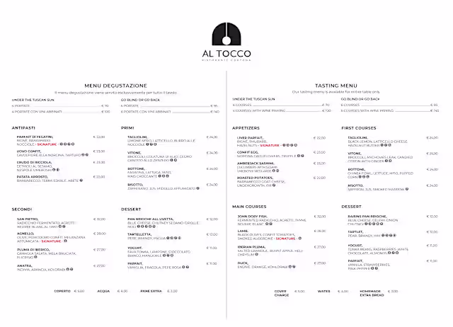 Everything at Al Tocco is perfectly executed. The cocktails are creative without being overly clever. The food and wine pairing is consistently superb across all the courses. The staff is fantastic. The overall vibe, including the playlist, is excellent. Absolutely loved our experience. Can’t recommend highly enough!