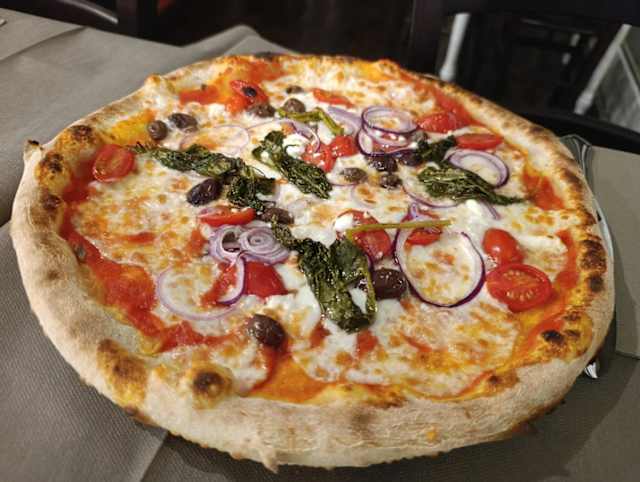 - Pomodoro san marzano, gorgonzola fior di latte, salame piccante, nduja, basilico