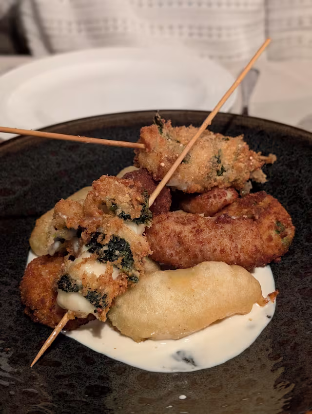 Amazing shared starter. And my main of steak with rosemary was incredible. Was great to get so many meat options compared to the coastal offerings. The pizza was also great and wish we had time to come back a second time. Highly recommend.
