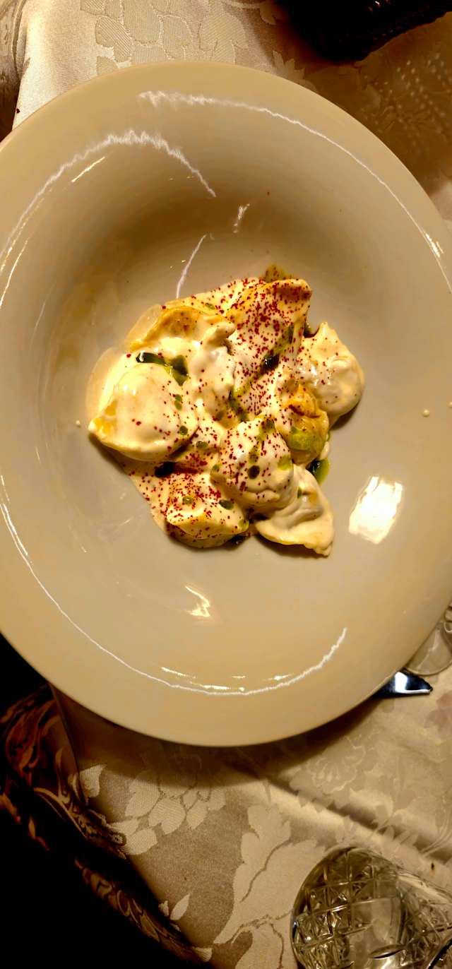 - Ravioli ripieni di erbette con burro fuso, salvia selvatica e amaretto