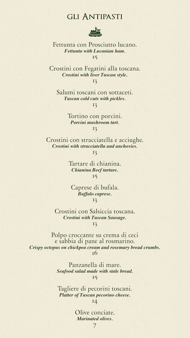 ToscanoMeat CuisineOutdoor diningWheelchair Accessible