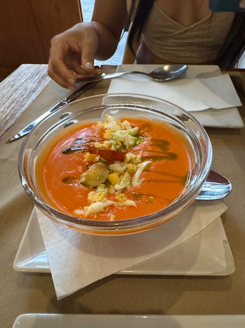 7.5/10Nothing was special or tasty. Salmorejo was the best plate by far, Paela tasteless.