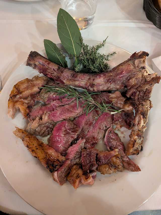 10/10Hidden gem very spacious inside with different area (one for drink /aperitivo) and another one for dinner. Menu focues on meat but you can also find pasta without meat. I don't eat meat for example and I had a delicious spaghetti con pomodoro, grilled vegetables and a nice dessert! The service is very good
