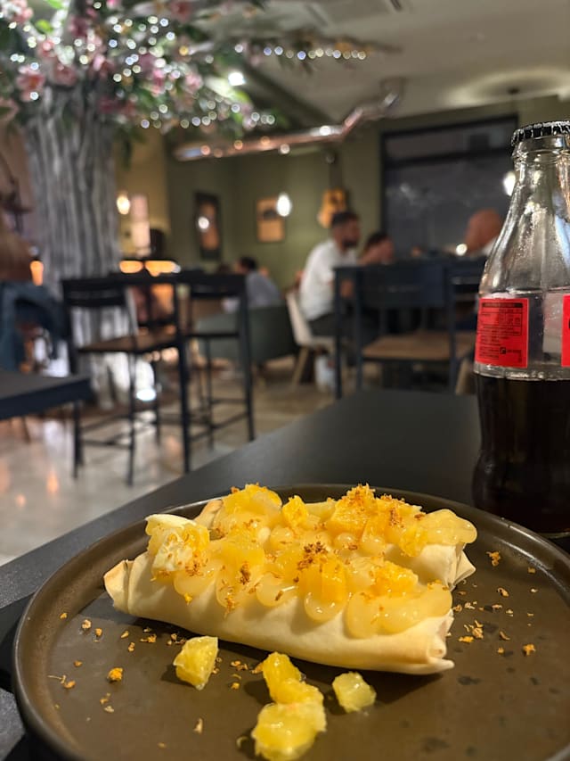 Sfoglie di riso ripiene di provolone con crema all’arancia e dadolata di agrumi 2 pezzi