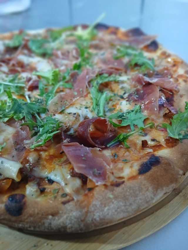- Salsa, mozzarella, jamón ibérico y rúcula