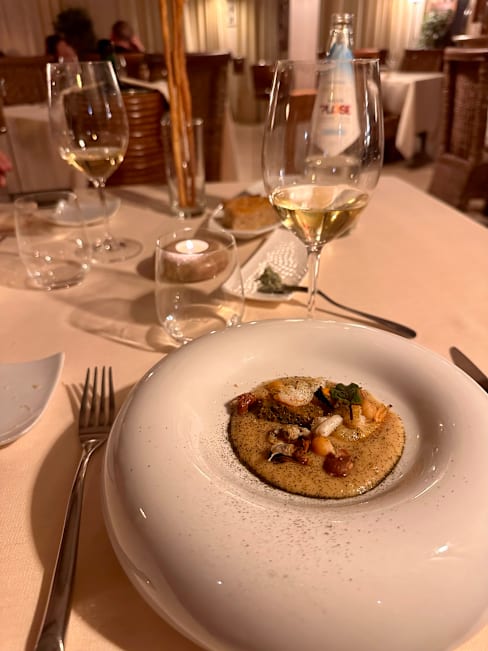 10/10Great raw fish and best scallops ever Risottos both super , top chef here every detail great and ansjovis butter superb Great wine also and what a choice