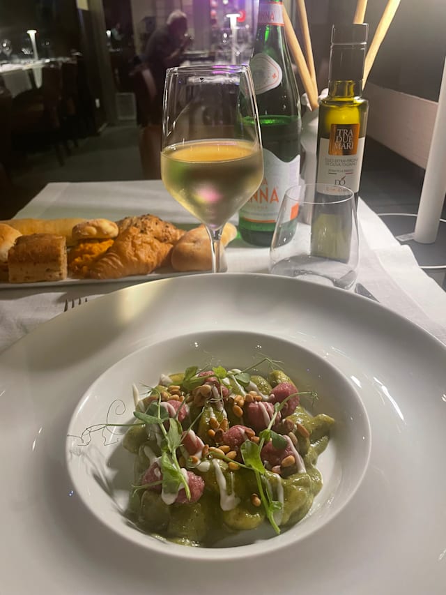 8/10We loved the gran crudo plate, both fish dishes were great, as was the unique Tiramisou. The chardonnay wine bottle went well with our dishes. We enjoyed our meal.
