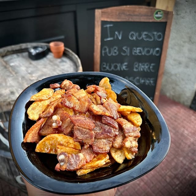 - Patata pasta gialla con crema “carbonara” e bacon croccante