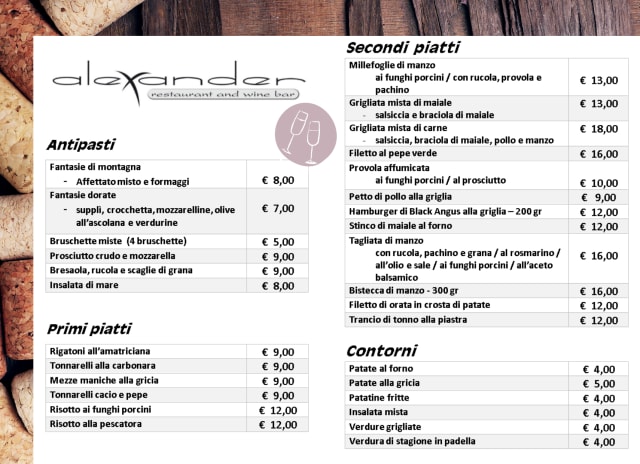 Alexander Restaurant - Hotel Palace 2000 is identified as offering italian cuisine.