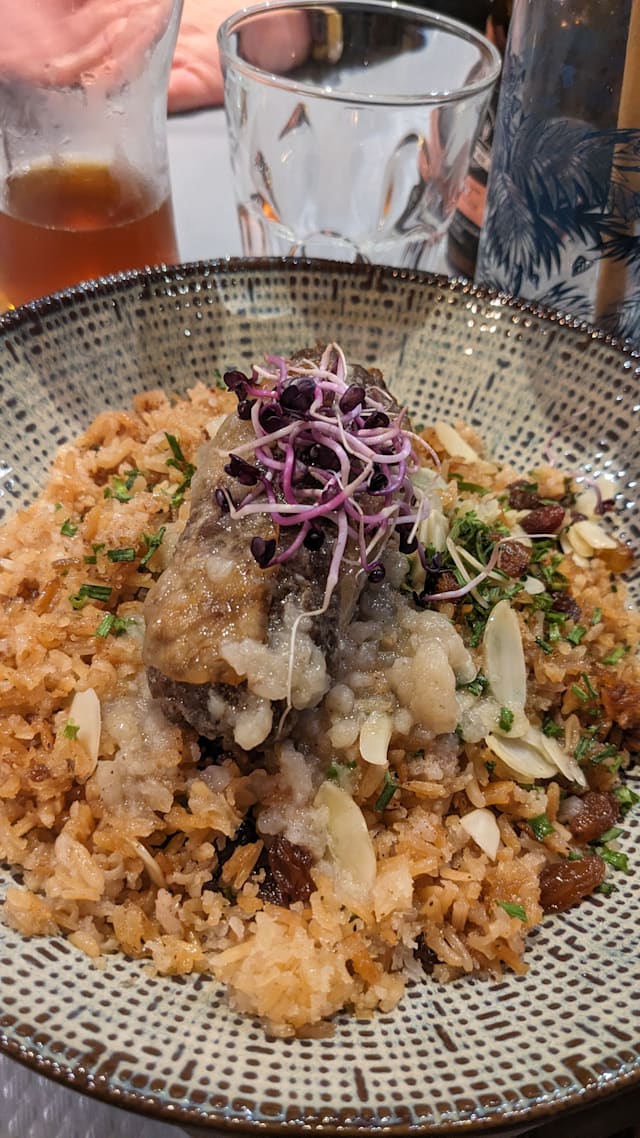 Crépines d’agneau farcie à la viande hachée aux épices, riz marron aux fruits secs