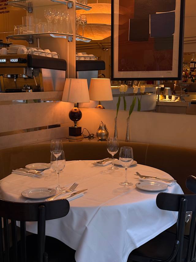 7.5/10The service was very professional and courteous. The starters were excellent, the main courses were not so much to our taste. The atmosphere is pleasant, elegant but the seating is very crowded and not intimate at all.