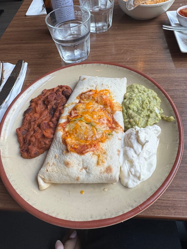 2.5/10Total tourist trap, This restaurant has so nothing to do with Mexican food. Too greasy, not authentic, Presentation horrible, Guacamole of questionable color and quality. My colleague had some chicken stripes which were of horrible quality. The empanadas were deep fried and the corn on the cob tasted of old fat. We would definitely not come here again!