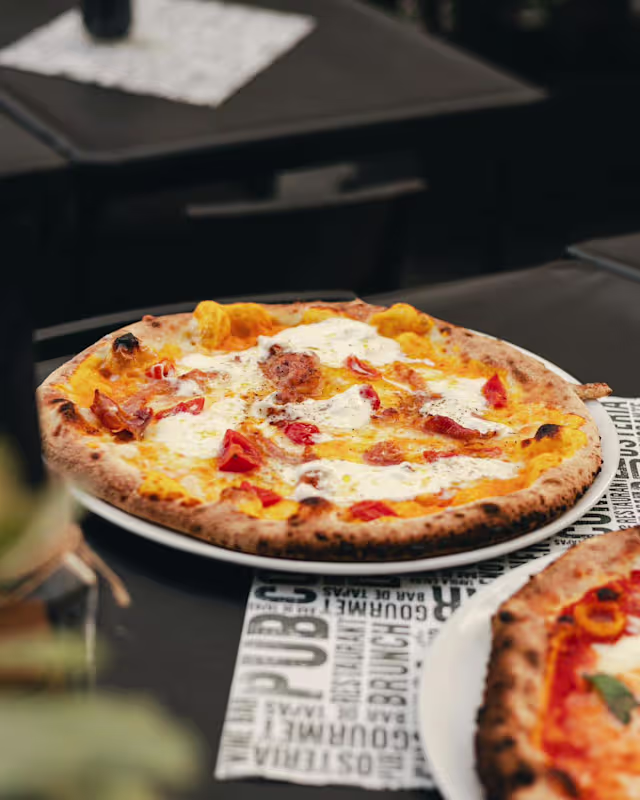 - Pomodoro , mozzarella, ‘nduja, carciofi, spianata calabra e caciocavallo podolico - in uscita.