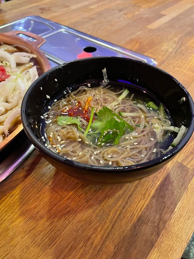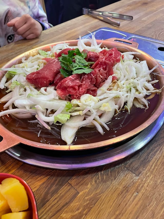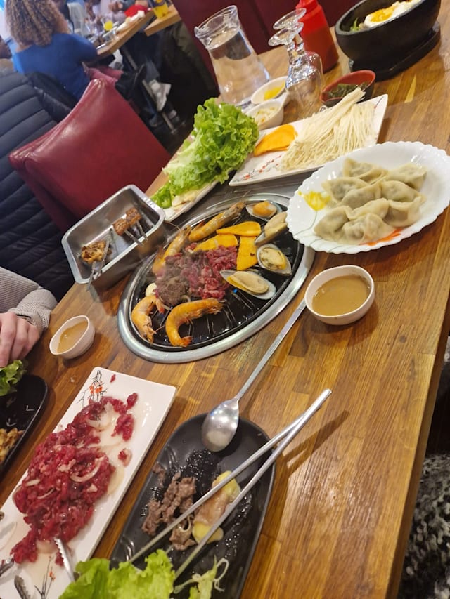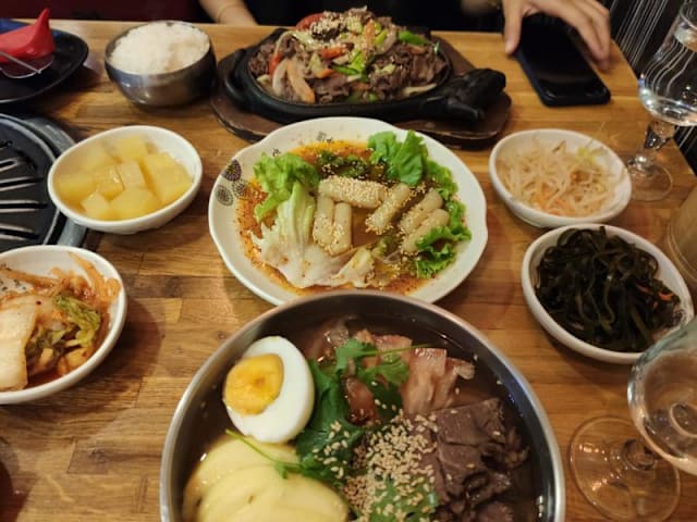 6/10Strange one. Of the two waiting staff, in a restaurant with only two other tables occupied, one spoke no French at all (and, apparently, no English), while the other one spoke enough French to take our order but, when it came to pay, wanted to explain in Korean that we weren't eligble for the Fork discount. We were and,having calculated the correct price ourselves, she seemed happy enough for us to pay the lower price. Although not happy enough for us to pay it via the Fork app, contrary to what was clearly stated at the time of booking. As I say, strange one. Although nothing to necessarily rave about, the food - ravioli frits to start, followed by a bibimbap au boeuf and a porc à la sauce piquante - was hot, tasty, and plentiful. At 30€, good value for money too. If the discount is applied ;-)