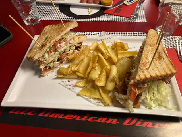 - 4 hamburgers da 200 gr di manzo, serviti nel classico panino, 4 strati di insalata, 4 strati di pomodoro, 4 strati di cheddar, maionese e ketchup a volonta' (per un totale di 800 gr di carne!!!). Accompagnati da potato dippers