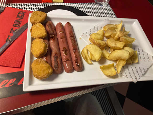 - 2 Hot dogs e 4 chick'n nuggets, serviti al piatto con potato dippers