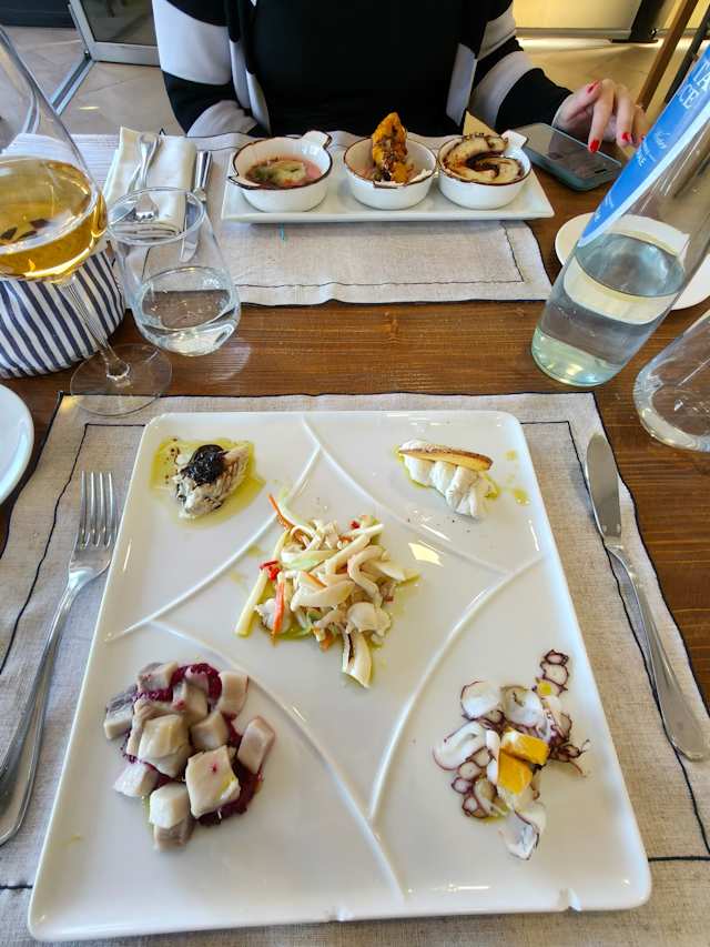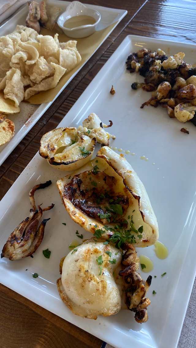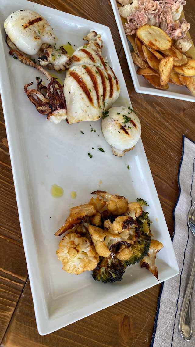 - Polpo alla griglia su cremoso di fagioli tondini del tavo e riduzione di ratafia