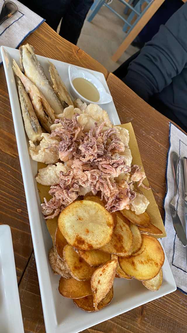 - Triglia in tempura su verdure marinate e riduzione di cipolla rossa