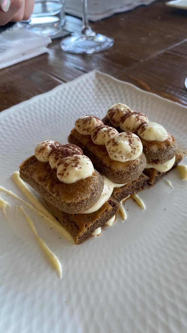 - Noci di capesante scottate, purea di piselli, polvere di agrumi e nocciole tostate