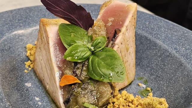 con crudo di tonno rosso e bottarga di muggine (Cabras).