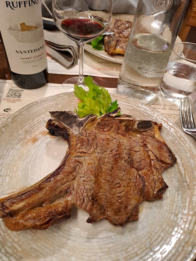 10/10The meal was like a performance primarily because we ordered what is likely the house speciality, the real “bistecca fiorentina”. A wonderful performance because the staff present —-close to the table the grilled meat (sold by the kilo and minimum two persons ). —-slice it up, generously sprinkle with olive oil, salt and pepper (I believe) and light it all on fire. The flames are short lived but remain long enough to sear the meat just a bit more to make it perfetto. Not to be missed while in Florence! One note of caution: don't make the same mistake as I did and wait patiently for the bill at the end. March right up to the counter like the Italians and pay at the register. Lovely experience and memory!