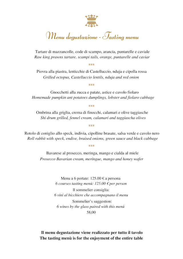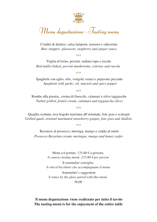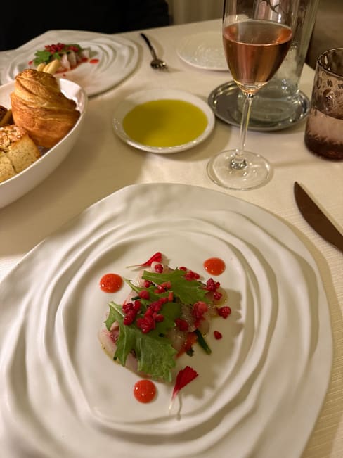 10/10We had a wonderful evening. Gianluca took great care of us. The whole service was absolutely perfect: discreet but there (real luxury indeed). We took the 6-course menu with the wine pairing - this is not what I usually do and I am not much into fishes but I wanted to try and accompany my husband: best decision I’ve ever made. Incredible flavors, very refined, quantities perfect and the wine pairing made it even more incredible. We loved every bit of it. I’ve had given instructions during the booking that were all dully respected. Thanks to the whole team for this great night.