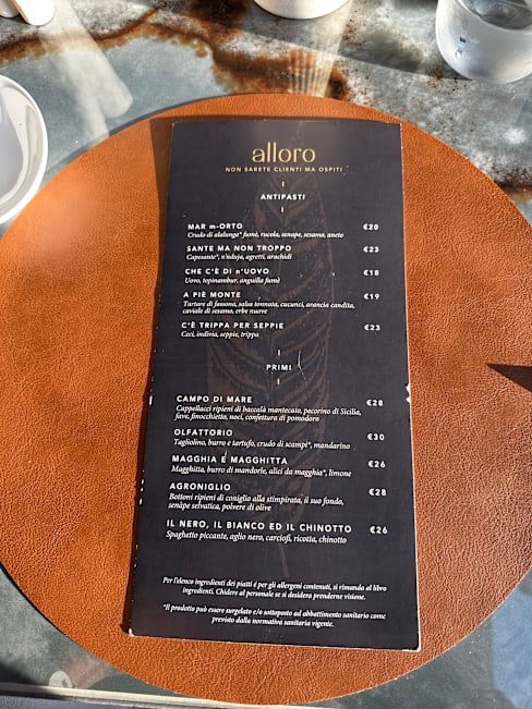 10/10+9I was pleasantly surprised by Alloro. It was an amazing coincidence that I found it while searching for a Western Union, conveniently located next to a plaza filled with charming shops, banks, and a beautiful church. Vincenzo, the owner, was incredibly welcoming and helpful, while Chef Salvo kindly explained all the dishes with genuine warmth. The food was spectacular; you could feel the love and care in every bite. Each plate we ordered looked appealing, smelled great, and tasted wonderful. They use all local ingredients, and from the amuse-bouche to the petit fours, every dish we tried made us very happy. Thank you for the warm welcome and outstanding food. We hope to return soon!