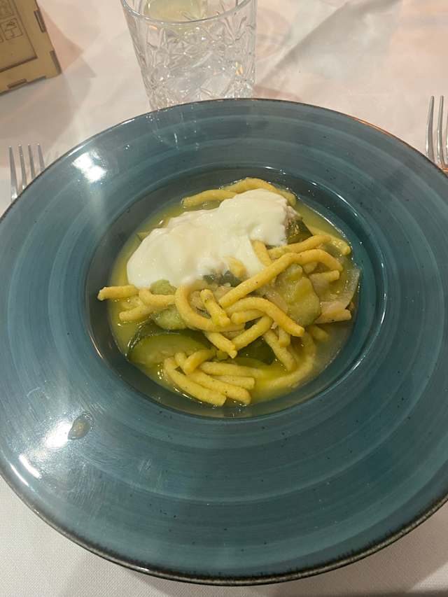 - Passatelli asciutti con stracchino, zucchine in crema e scalogno