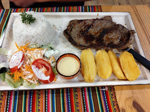 9/10Food was very good and so was the service! We had lomo saltado, arroz con mariscos and 3 leches as dessert. Spectacular!!!