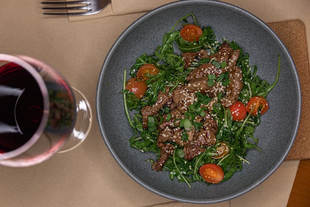Novilho estilo asiático com rúcula