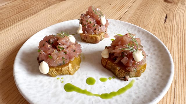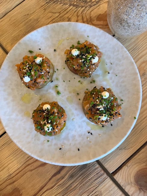 8.5/10The starters we had were excellent. The tartare was the highlight for us, but the octopus croquette-style dish was also very good. The mains were also really good --- the catch of the day dish was very novel to us and executed superbly, and the aubergine dish was a great example of how to cook an interesting vegetable dish. The desserts were a little disappointing given the excellent food we'd had thus far. Their signature coffee dessert was good but it didn't have the same wow factor which was received from the starter and the main. Overall, the food was great and we would definitely recommend it.