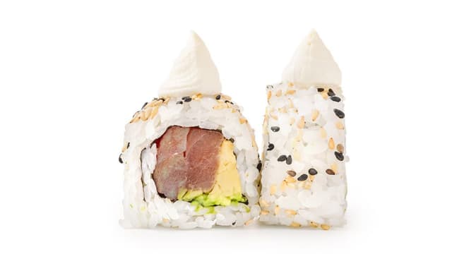 - Tonno* e avocado con topping di philadelphia e semi di sesamo misti