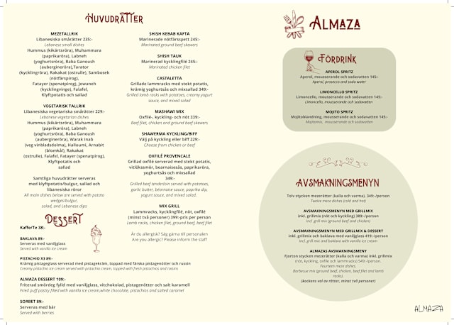 We loved our dinner at almaza. Fresh and tasty Lebanese food, warm service , nice with kids even for a dinner.