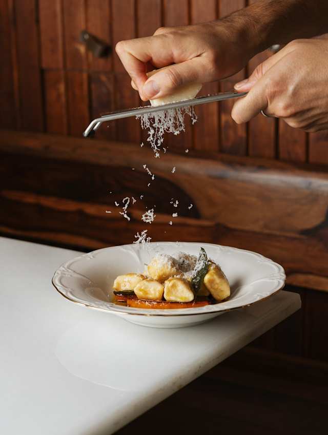 - Com manteiga noisette, abobora assada e parmesao