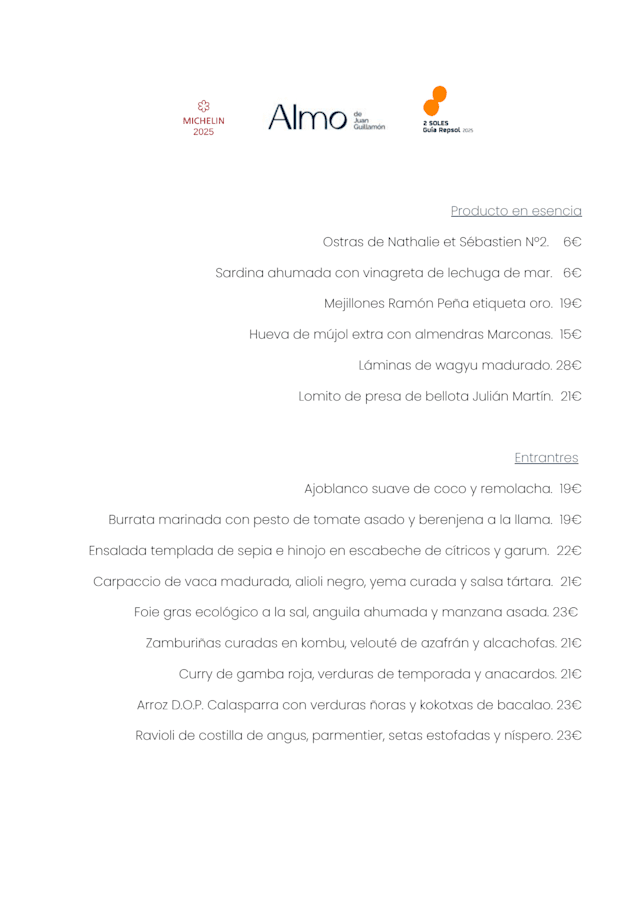 10/10We very much enjoyed our lunch experience at Almo. We ordered A la carte and the food was delicious, we could not fault the quality and imagination of something so beautiful in taste and presentation. The detail was amazing. Chef Juan came to the table which was a nice touch. We had impeccable service from staff and particular thanks to Sergio our waiter who looked after us well and a good sense of humour. Highly recommend this restaurant for what was an exquiste experience and at a very reasonable price. Well done Almo.