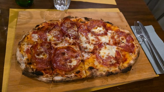 base rossa,mozzarella,bomba calabrese piccante,salsiccia di cioli,cipolla rossa