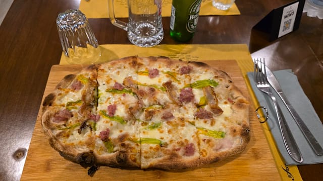 base bianca,mozzarella,salsiccia di cioli e friarelli.