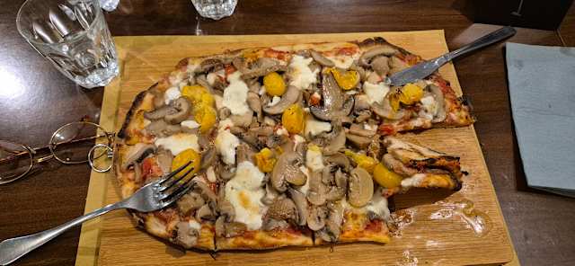 - base bianca,mozzarella,guanciale di cioli,funghi e salsa tartufata