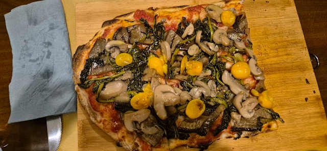 - base bianca,con mozzarella,mozzarella di bufala,funghi,pomodorino giallo,friarelli e melanzane.
